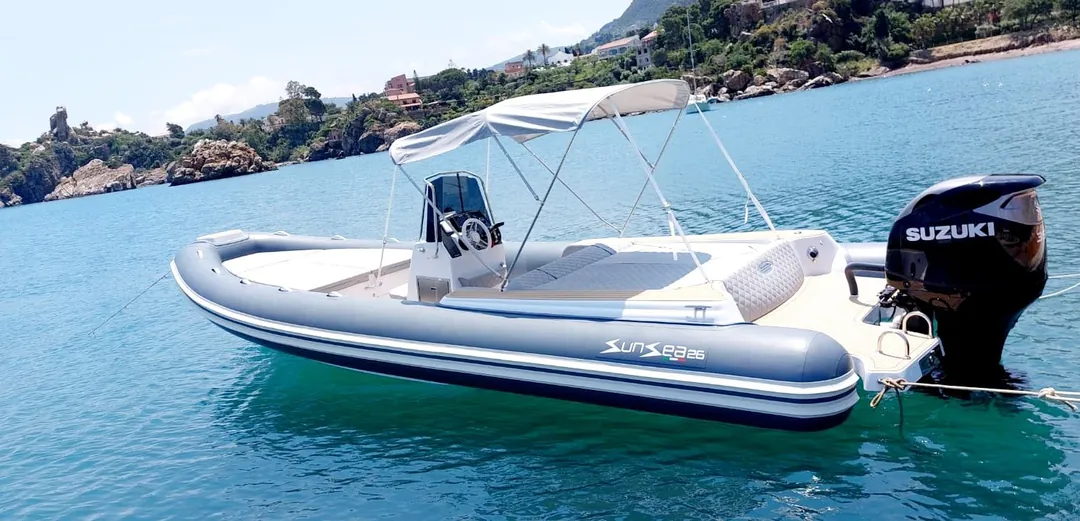 Scopri il massimo delle prestazioni con il gommone Seasun 26 Special, l’imbarcazione perfetta per un’avventura all’insegna della velocità e del divertimento lungo la costa di Cefalù! Con i suoi 8 metri di lunghezza e un potente motore Suzuki da 350 cavalli, questo gommone ti permetterà di solcare le onde fino a 50 nodi di velocità massima.