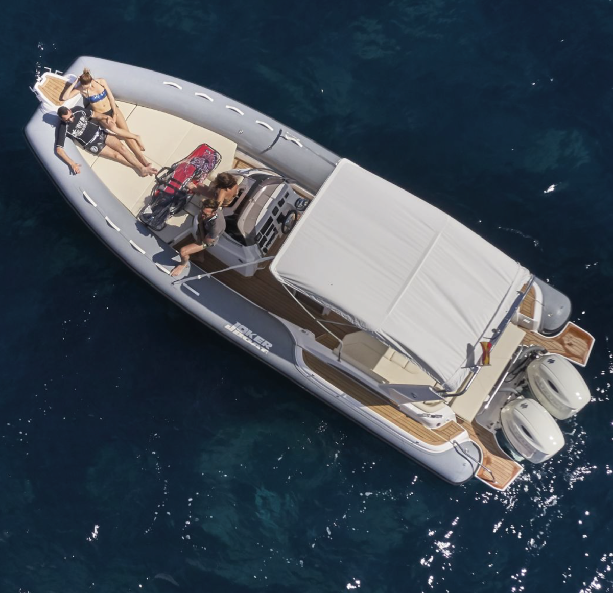 Gommone Joker Boat Clubman 28 di 9 metri, motorizzazione 1 da 300kw, portata massima 12 persone.